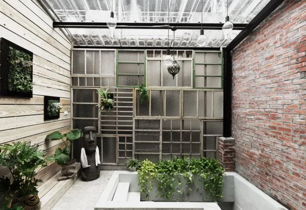 Utiliser des matériaux de construction comme ces anciennes fenêtres donne une texture au mur en plus de laisser traverser la lumière. On peut aussi exposer notre mur de briques lorsqu'on a la chance d'en avoir un. Chaleur instantanée.